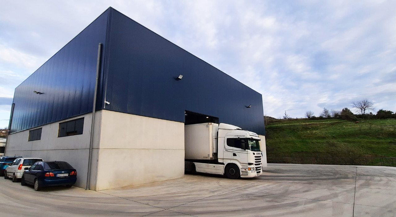 El pabellón, de una sola planta y con una geometría rectangular, se ha construido sobre una parcela situada en el Polígono Industrial Abra Industrial. Su ubicación al fondo del solar responde a criterios urbanísticos, respetando las distancias mínimas exigidas respecto a los viales y parcelas colindantes. El acceso principal se realiza a través de la fachada frontal del edificio, estableciendo una transición fluida entre el espacio público exterior y las áreas privadas del interior, lo que facilita tanto el acceso de vehículos como el tránsito del personal.