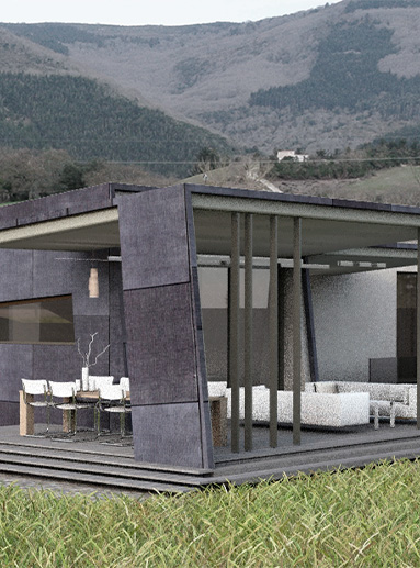 La orientación norte-sur, cuidadosamente elegida, responde a principios básicos de sostenibilidad natural, permitiendo un aprovechamiento óptimo de la luz solar y favoreciendo la eficiencia energética. La vivienda se construye con materiales industrializados y semi-industrializados, seleccionados por su bajo impacto ambiental y su capacidad para reducir las emisiones de CO₂. Esta elección no compromete la estética, sino que la potencia, dando lugar a una arquitectura sobria, elegante y comprometida.