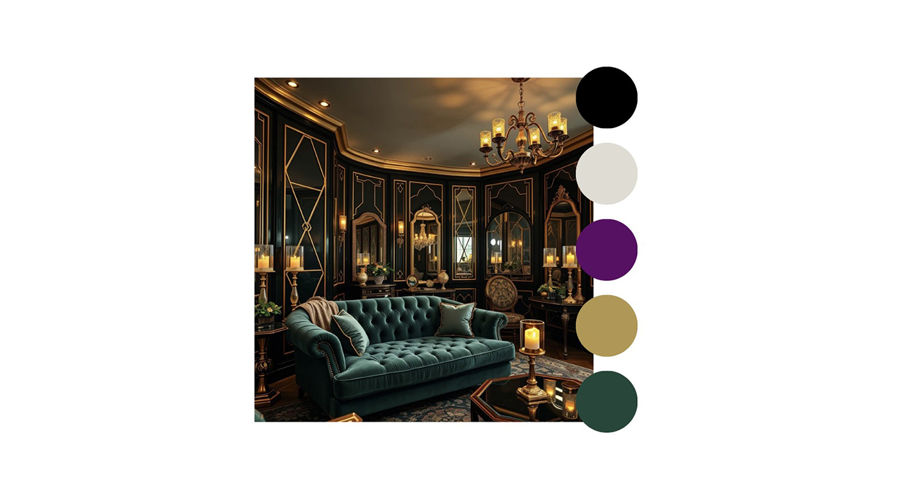• Materiales nobles: Se emplean materiales como ébano, mármol, terciopelo y vidrio. La combinación de superficies brillantes y texturas opulentas crea un ambiente atemporal y sofisticado.
