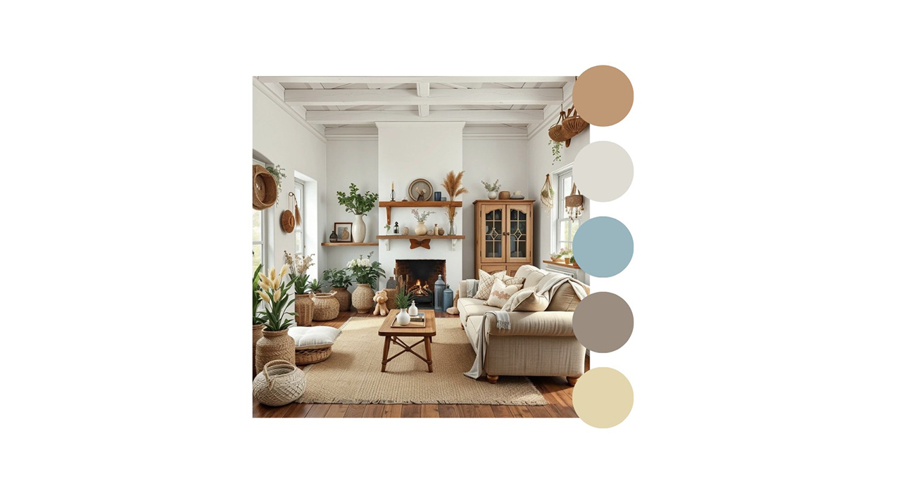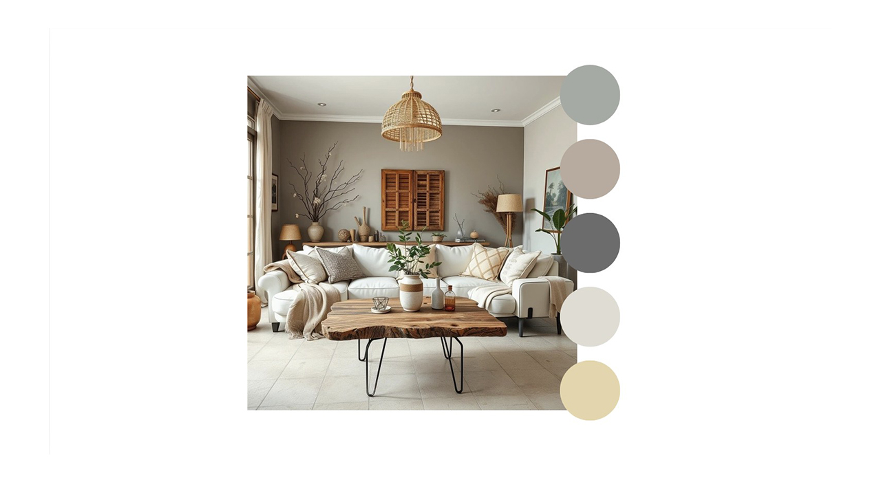 • Colores neutros y naturales: Tonos como beige, blanco, marrón claro y gris predominan en la decoración, evocando los colores de la tierra y el entorno natural. La clave está en crear una atmósfera acogedora y serena, sin estridencias visuales.
